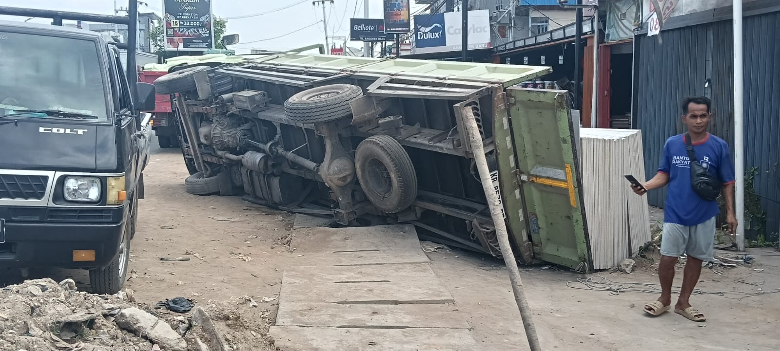 Proyek yang dikerjakan oleh CV. Roy Halim Utama dengan waktu pelaksanaan 24 November 2025 s/d 31 Desember 2025 tersebut telah menyebabkan tiga kali kecelakaan kendaraan terperosok dan terbalik, yang menimbulkan kerugian dan membahayakan keselamatan masyarakat serta pengguna jalan.