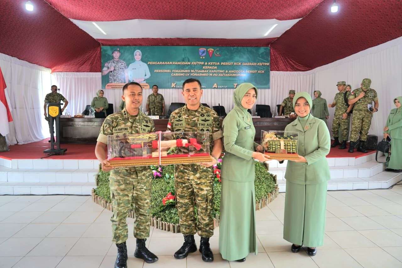 Kedatangan Pangdam XII/Tpr beserta Ketua Persit Kartika Chandra Kirana Daerah XII/Tanjungpura, Ny. Uya Novi Rubadi, disambut langsung oleh Komandan Batalyon Armed 16/TK, Letkol Arm Ari Hartono, M.I.P., M.Tr.Mil., dan prosesi jajar kehormatan dan penyambutan oleh seluruh keluarga besar satuan.