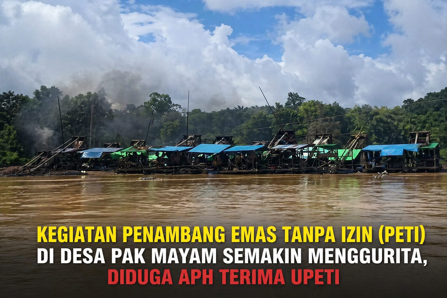 Aktivitas Pertambangan Emas Tanpa Izin (PETI) di aliran Sungai Landak, tepatnya wilayah Desa Pak Mayam, Kabupaten Landak, dilaporkan semakin marak dan berlangsung secara terang-terangan.